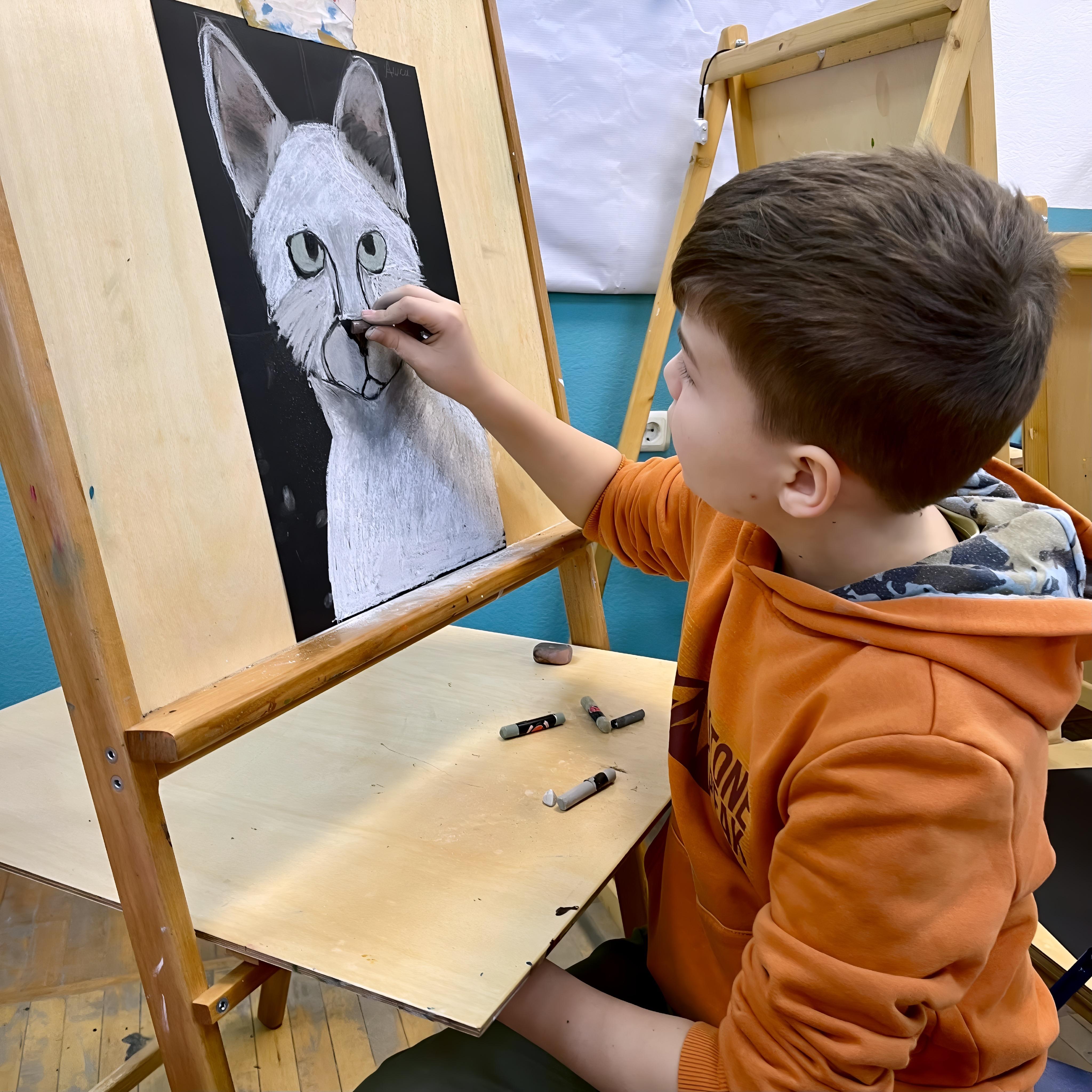 На этом курсе дети углубленно изучают изобразительное искусство. Глубокое погружение в изобразительное искусство для тех, кто увлечен рисованием 👩🎨🎨 и готовится к поступлению в художественную школу, колледж, ВУЗ. Занимаемся по трем направлениям: рисунок, живопись, композиция. Раскрываем 4 темы: пейзаж, натюрморт, человек, животное ✔️Пишем с натуры ✔️Разбираем теоретические основы: перспектива, светотень, построение ✔️Материалы входят в стоимость. ✔️Рисуем 120 минут в мини-группе до 10 человек ✔️Мольберты и стулья со спинкой соответствуют росту. ❗️Комфортно для зрения и осанки. Мы работаем по абонементу - 4 занятия в месяц Пробное 250 рублей ---------------------------------------------------- Полное расписание присылаем после оформления заявки