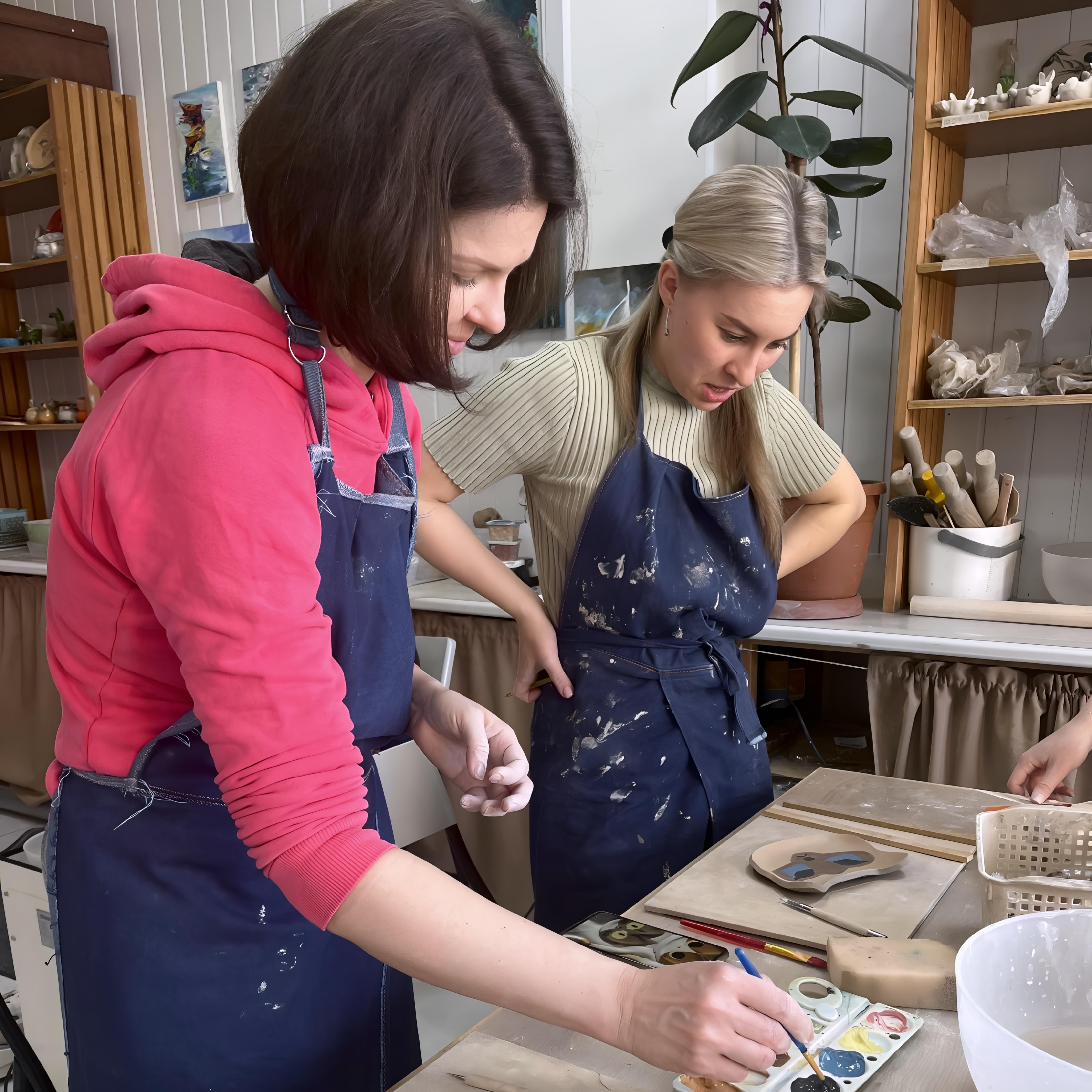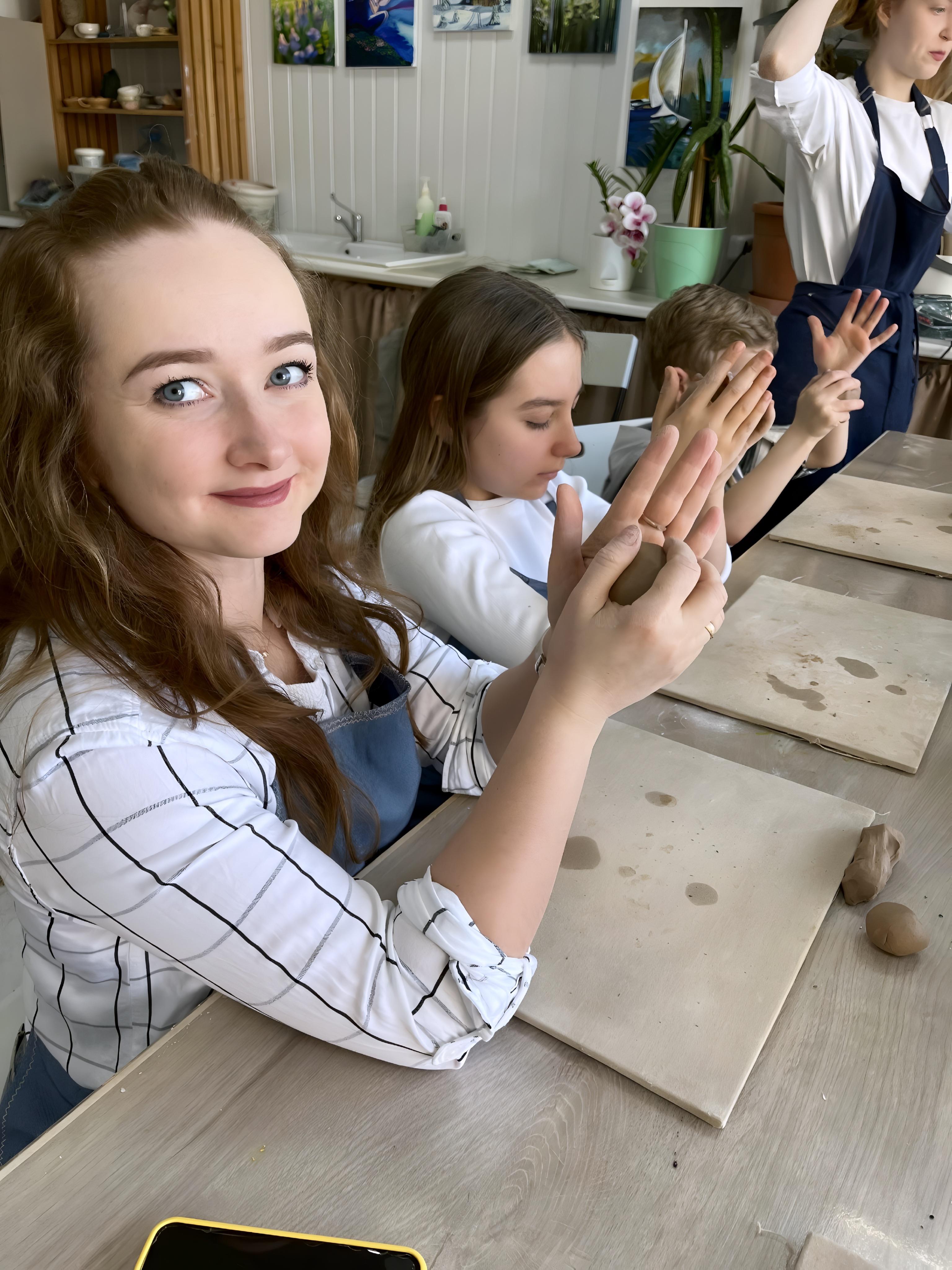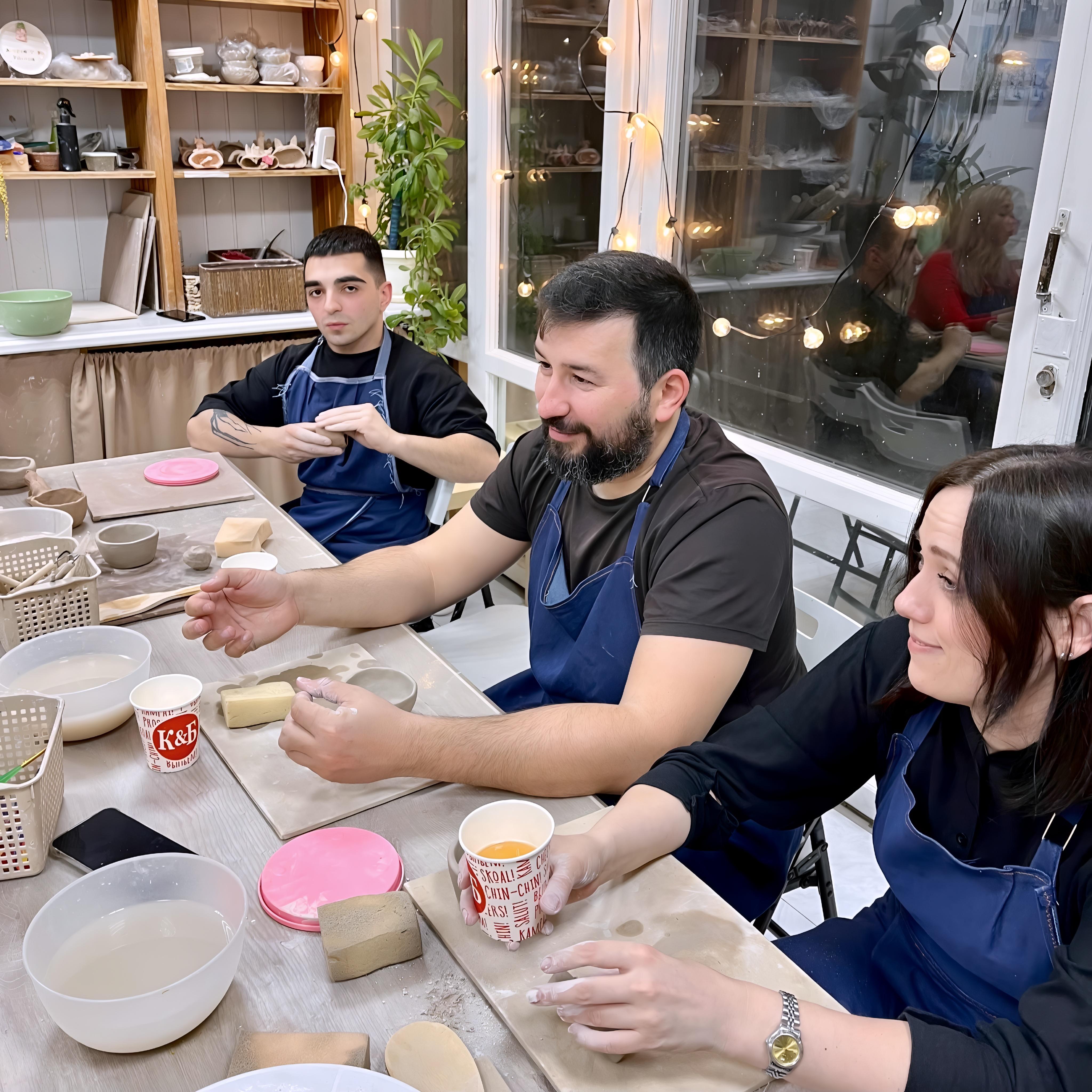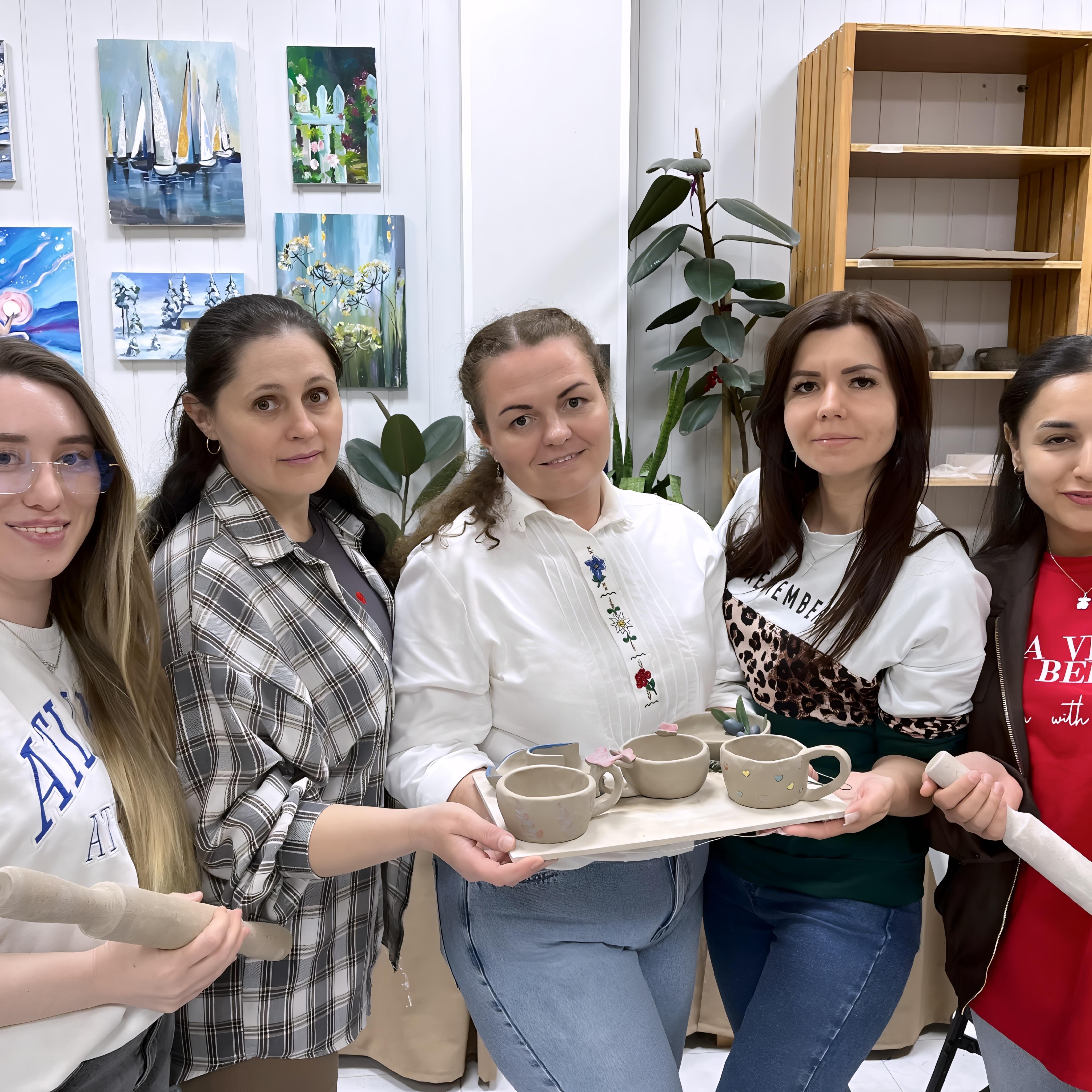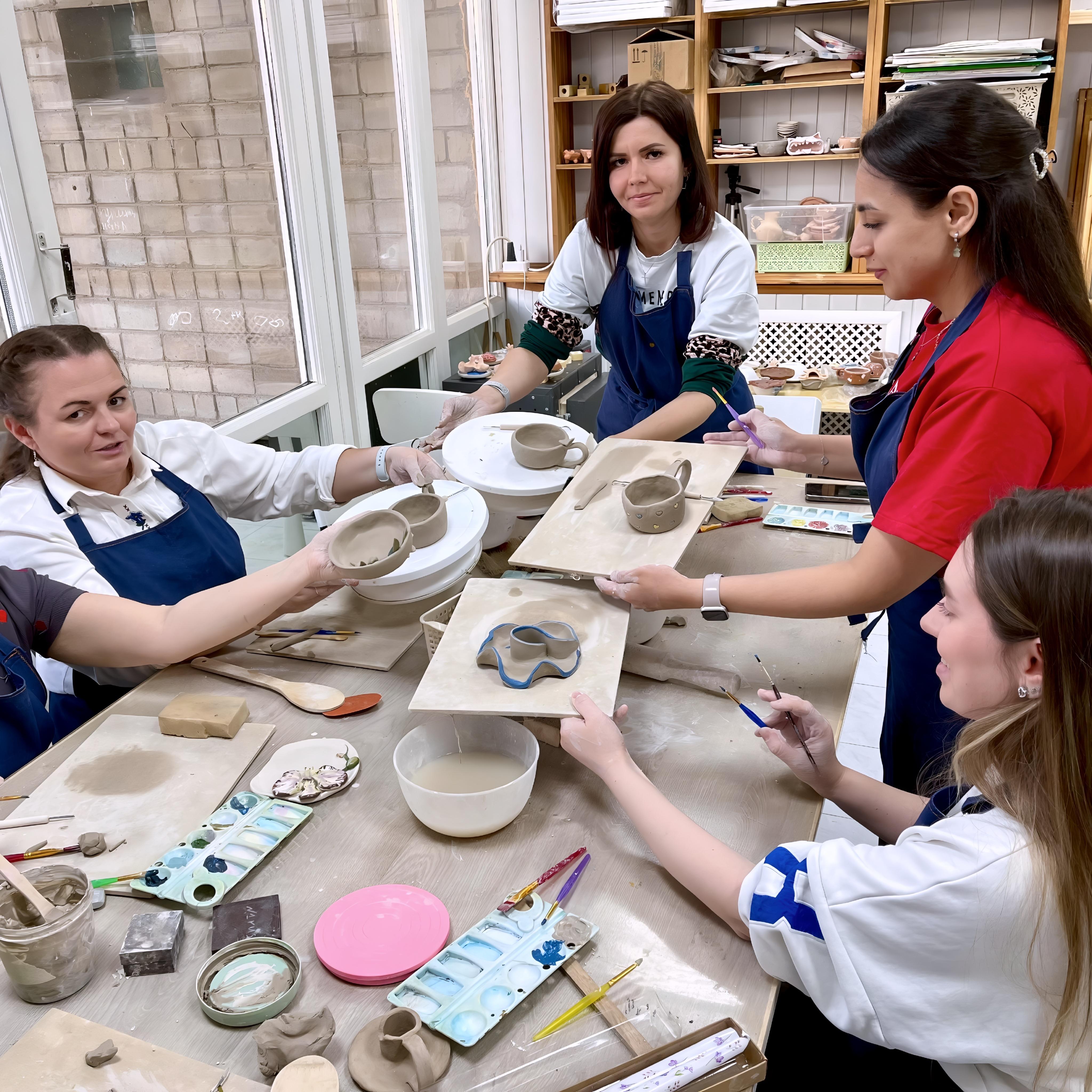 День рождения, корпоратив, девичник в гончарной. Для тех, кому хочется новенького, творческого и интересного. Базовый мастер- класс от 4 человек Мастер-класс для вашей компании. Вы слепите изделие с индивидуальным декором и раскрасите его. Продолжительность 2 часа. Фото, фейерверк и хорошее настроение гарантированы. Расширенный мастер-класс Мастер-класс для вашей компании. Вы слепите изделие с индивидуальным декором и раскрасите его. Дополнительно будет целый час на тортик, пиццу, вино и общение. Продолжительность 3 часа. Фото, фейерверк и хорошее настроение гарантированы. Каждое изделие пройдет двойной обжиг в печи в течение суток при температуре 1100 градусов. Через 3 недели после мк вы сможете наслаждаться красотой.